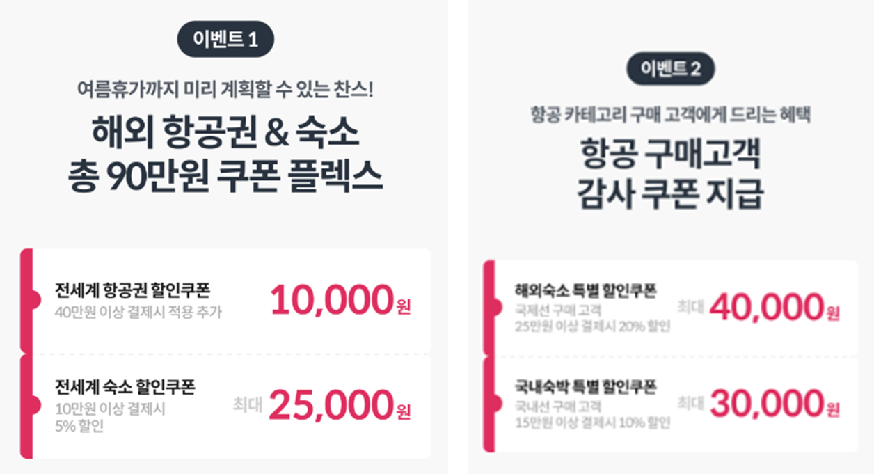 항공권 할인 특가 국내 숙소 쿠폰도 제공합니다.